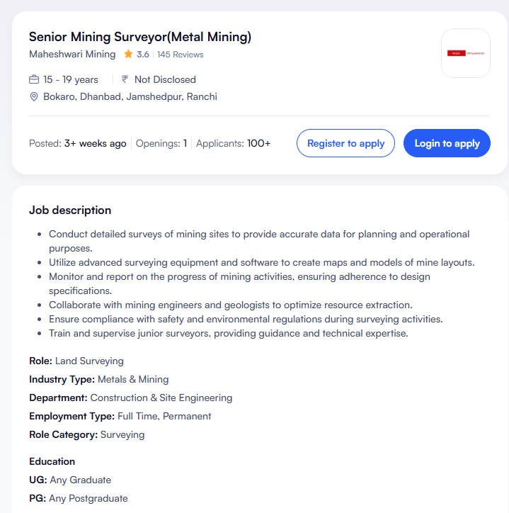 Post: Senior Mining Surveyor(Metal Mining)